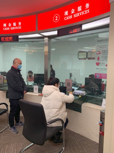 圖為客戶在廣西區(qū)中行網(wǎng)點迅速取到防疫資金