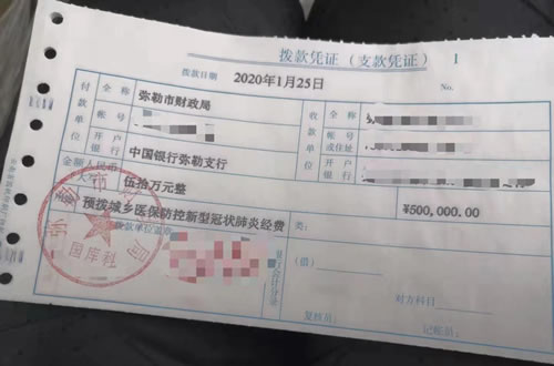 山東:1月26日,中行山東臨沂臨沭支行接到縣財政局關(guān)于協(xié)助衛(wèi)健局撥付應對新冠病毒??畹木o急通知,第一時間組織人員到崗,及時準確完成80萬元醫(yī)療物資采購資金撥付。