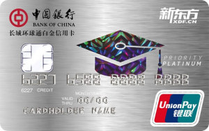 長(zhǎng)城環(huán)球通新東方聯(lián)名信用卡是中國(guó)銀行聯(lián)手新東方集團(tuán)、VISA和銀聯(lián)卡組織,精心為有出國(guó)留學(xué)規(guī)劃的學(xué)生家庭打造的一款專(zhuān)屬產(chǎn)品,不僅傳承了留學(xué)生長(zhǎng)城國(guó)際卓雋卡的諸多功能與便利外,還為客戶提供一攬子家庭賬戶集中管理、留學(xué)相關(guān)的境內(nèi)外用卡專(zhuān)屬優(yōu)惠權(quán)益,伴您一同走過(guò)出國(guó)留學(xué)之路。
