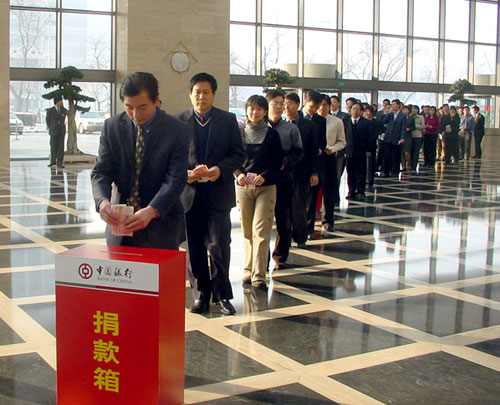 While the overseas branches were engaged in cash and material donations for the disaster areas, Bank of China head office and domestic branches, as the spokesman revealed, were also active in fund-raising. On the morning of January 6, directors and staff of the Bank offered generous donations in the charity activities organized by the head office. According to incomplete statistics, as of press time, the head office has raised relief funds of RMB 200,243.