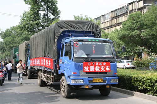 Seven trucks loaded with the second batch of supplies had left Xi'an for Sichuan by 15:00 on May 14.