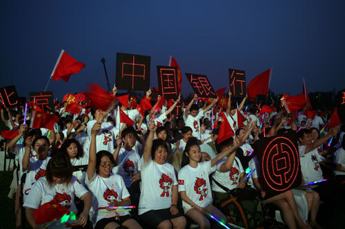 As the sole banking partner of the Beijing Olympic Games, Bank of China provided financial service for the Games and successfully completed all assigned service tasks, realizing the goal of "no complaint and no error". The staff of Bank of China who served the Olympic Games also presented at the concert to commemorate the first anniversary of the Beijing Olympic Games and wish China a better future.