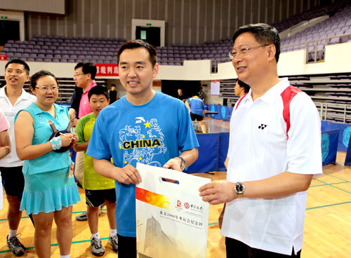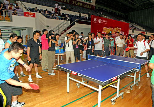 The first "National Fitness Day" Campaign starts across the country on August 8, 2009. On the launching ceremony at the main venue in Beijing, besides the group Tai chi performance of around 10,000 people on the Olympic Square and Olympic Boulevard, the "Bank of China National Fitness Carnival 2009" in Olympic Sports Center also attracts the public to participate in the campaign with four main theme sections and 32 sport and fitness items free of charge. And, the Olympic and the world champions, including Kong Linghui, Huang Xu, Jiang Yuyuan and Ye Zhaoying, are invited to the "Bank of China Wealth Cup Table Tennis and Badminton Tournament" organized by Bank of China, lifting the carnival to a climax.