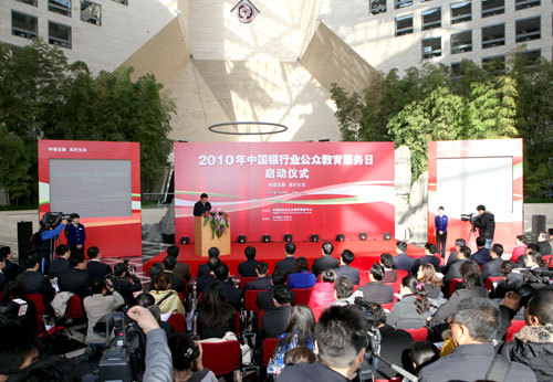 On November 28, 2010, the launching ceremony of the "2010 Public Education Service Day of China's Banking Sector" was held in Beijing. The event was hosted by the Public Education Service Center of China Banking Regulatory Commission (CBRC) and sponsored by the China Banking Association. Responsible persons from the National Development and Reform Commission, Ministry of Finance, the People's Bank of China, China Securities Regulatory Commission, CBRC, China Insurance Regulatory Commission, China Consumers' Association and officials from the Beijing Municipal Government attended the ceremony. Wang Huaqing, a member of the Chinese Communist Party Committee and the Secretary of the Discipline Inspection Commission of CBRC, delivered a speech. Through various means, the event is designed to popularize banking and financial knowledge.
