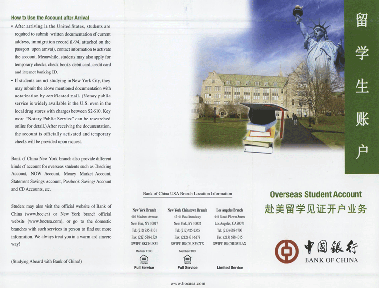 43-25 Main Street Flushing, NY11355 USA | 電話:1-212-925-2355 傳真:1-718-321-3733 郵箱:overseastudent@bocusa.com 網(wǎng)點詳情 >> |