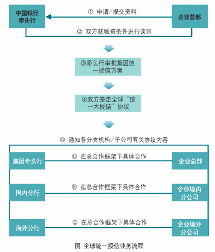 全球統(tǒng)一授信是對傳統(tǒng)授信產(chǎn)品使用范圍的延伸,能夠有效滿足公司客戶境外分支機構(gòu)的融資需求。具體而言,全球統(tǒng)一授信指根據(jù) 公司客戶跨境發(fā)展的需要,依托中國銀行廣泛的海內(nèi)外分行網(wǎng)絡(luò),為公司客戶境內(nèi)外分支機構(gòu)提供整體性融資解決方案。