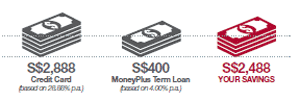 以下圖表顯示使用S$10,000易達(dá)錢定期貸款,您將享有節(jié)省。